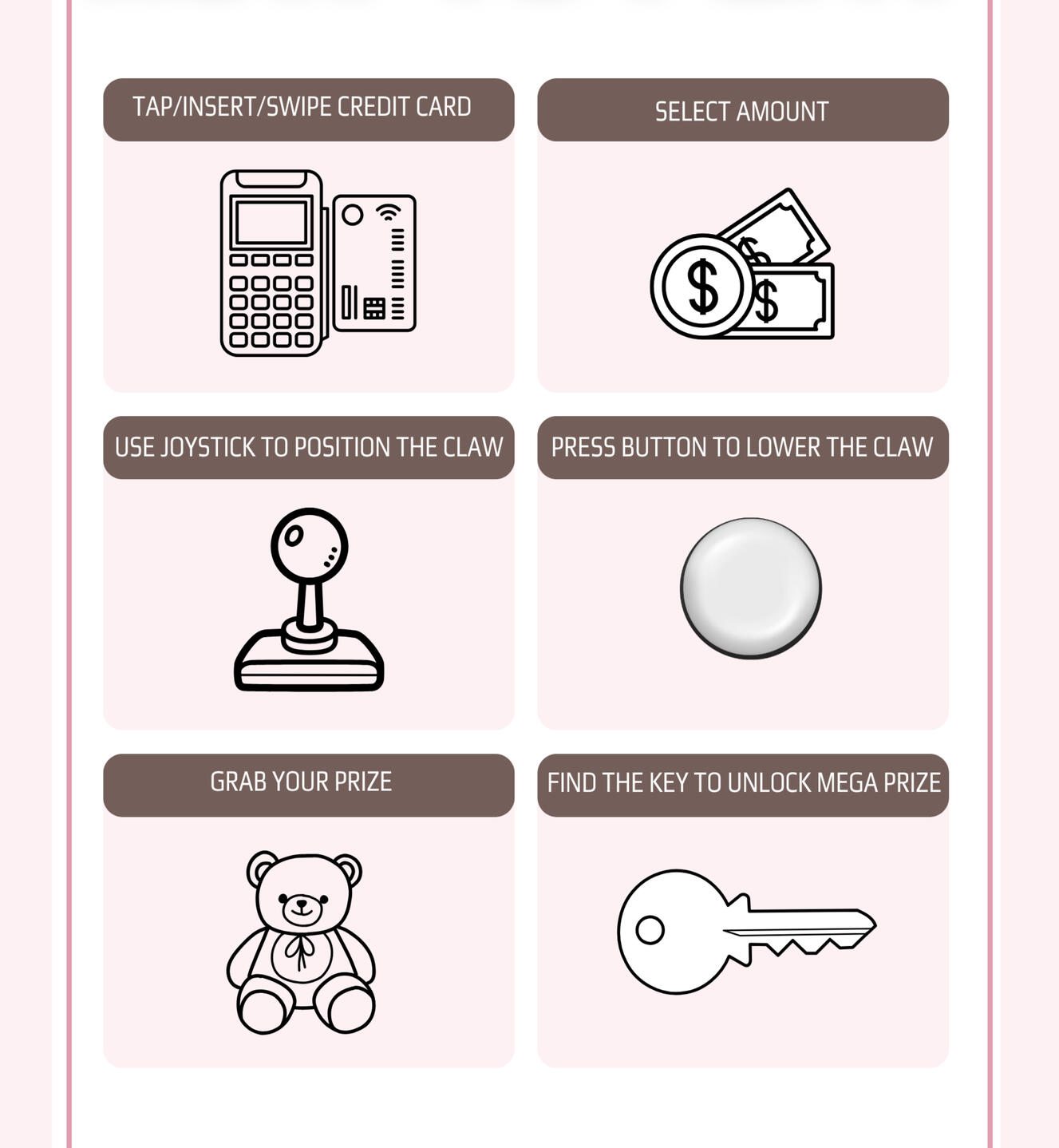 KLAWZ started with our family’s love for playing claw machines together. What began as something fun turned into an idea—sharing that joy with others.We first placed our machines in local businesses like boba shops, and seeing people stop, smile, and play showed us we were onto something.With the support of our family and closest friends that small beginning grew into what you see today—our very own KLAWZ arcade.Our mission is to create a fun, family-friendly space with fair play, quality prizes, and memories worth taking home.